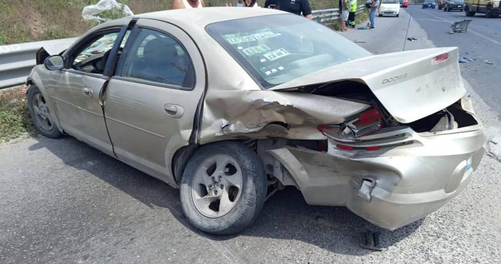 Tras el impacto, el Dodge Stratus fue proyectado contra el barandal de contención de la vía de cuota.