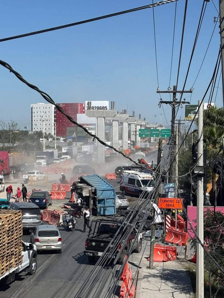 Apodaca NL.- Al mediodía de este martes 11 de noviembre se registró terrible choque-volcadura en la avenida Miguel Alemán en Apodaca, dejando como saldo una persona herida.