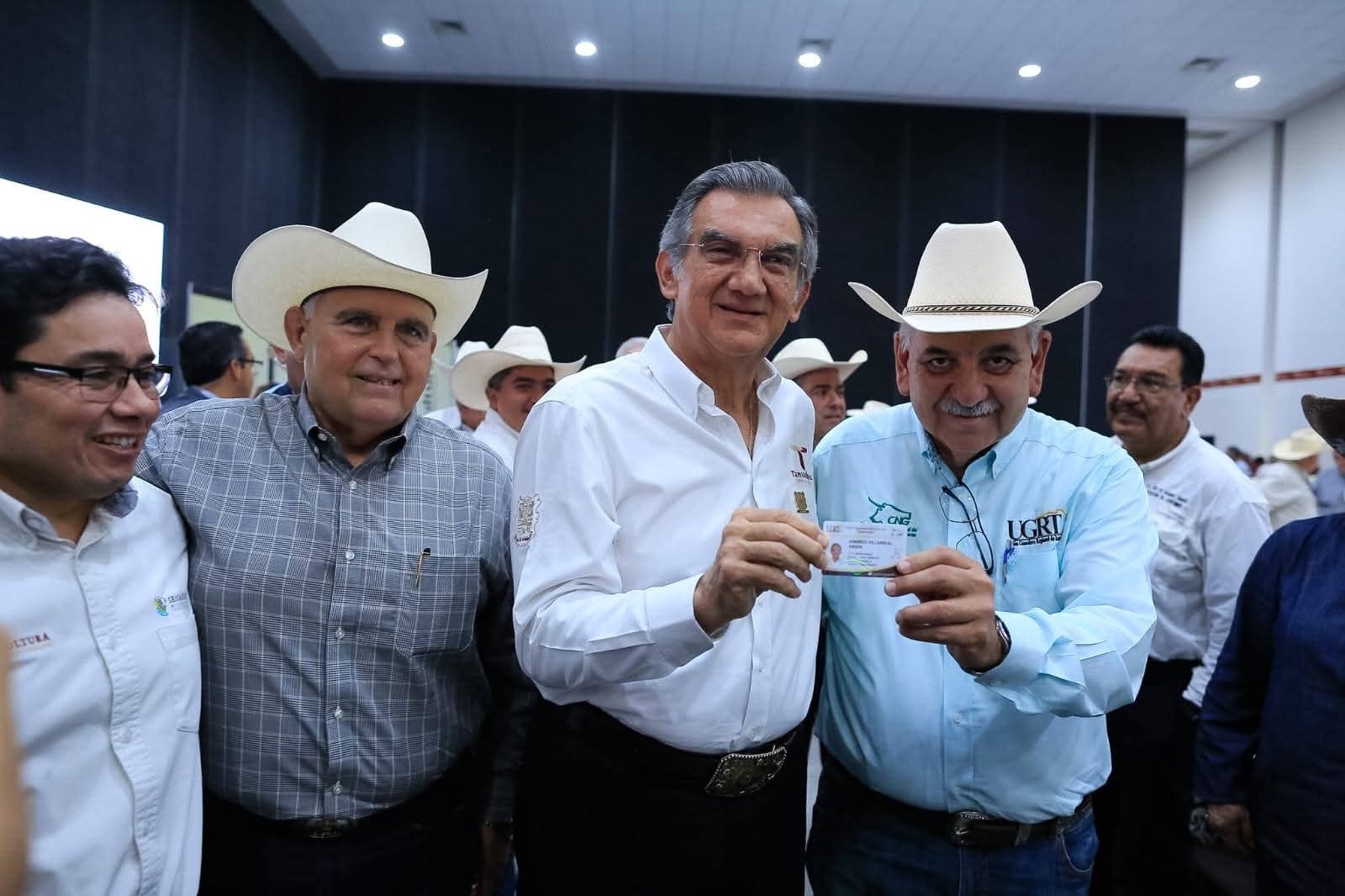 «El Senasica refrenda hoy su compromiso de continuar trabajando de manera conjunta bajo una sólida alianza público privada para ampliar la cobertura de los programas sanitarios, fortalecer los servicios técnicos y seguir impulsando el desarrollo ganadero de Tamaulipas y de todo México», agregó. En su mensaje de bienvenida, José Ramón Guerrero Gamboa, presidente de la Unión Ganadera Regional de Tamaulipas, reconoció todo el apoyo del gobernador Américo Villarreal al sector ganadero y aseguró que los programas y políticas públicas de su gobierno son y serán fundamentales para la preservación de la ganadería del estado. «Avancemos juntos en la consolidación de la cadena productiva de la carne para bien de todos los productores; convirtamos la crisis de bajos precios en grano y las exigencias sanitarias que llevaron al cierre de la frontera en oportunidad para ponerle el doble piso a la ganadería de Tamaulipas», indicó. Por su parte, Homero García de la Llata, presidente de la Confederación Nacional de Organizaciones Ganaderas, destacó la unidad que prevalece en el sector ganadero de Tamaulipas y se unió al reconocimiento al gobernador del Estado por el gran esfuerzo para atender el problema del gusano barrenador. Durante la Asamblea, a la que se dieron cita 54 asociaciones ganaderas locales, así como presidentas y presidentes municipales de Nuevo Laredo, Aldama, Casas, Güémez y González, además de legisladoras y legisladores, funcionarios estatales y todo el Consejo Directivo de la UGRT, el gobernador entregó el reconocimiento al Mérito Ganadero a Eulalio Guerra Guerra, de Reynosa; María Elvira Pérez Pérez, de Abasolo, y a don Héctor Osvaldo Barberena Aguirre, de Nuevo Laredo.