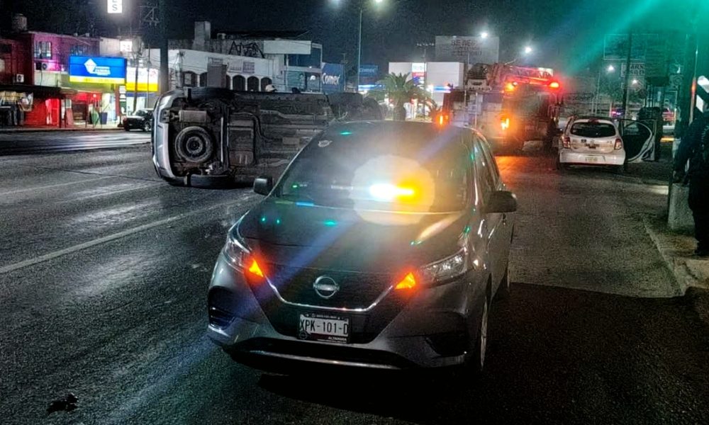 Una camioneta volcó sobre su costado luego de colisionar con un taxi en la madrugada de este martes, en la carretera Tampico-Mante, a la altura de...