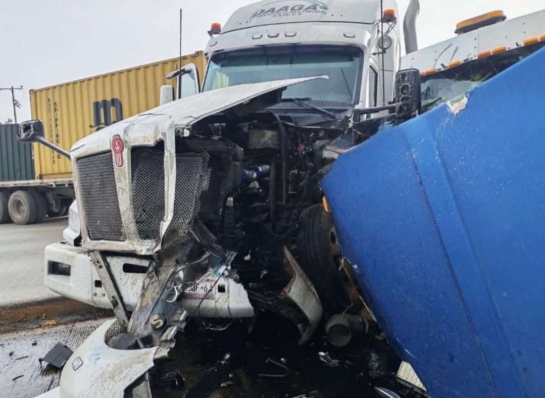 Esta mañana se registró una colisión entre dos unidades de carga tipo tráiler en el tramo carretero ubicado frente a la Universidad Tecnológica de Altamira.