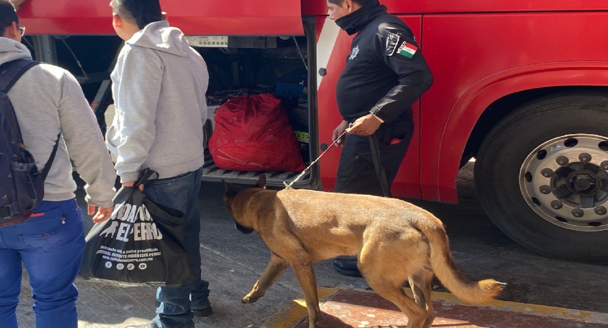 Guardia Estatal refuerza vigilancia con binomios caninos en la Central de Autobuses de Victoria