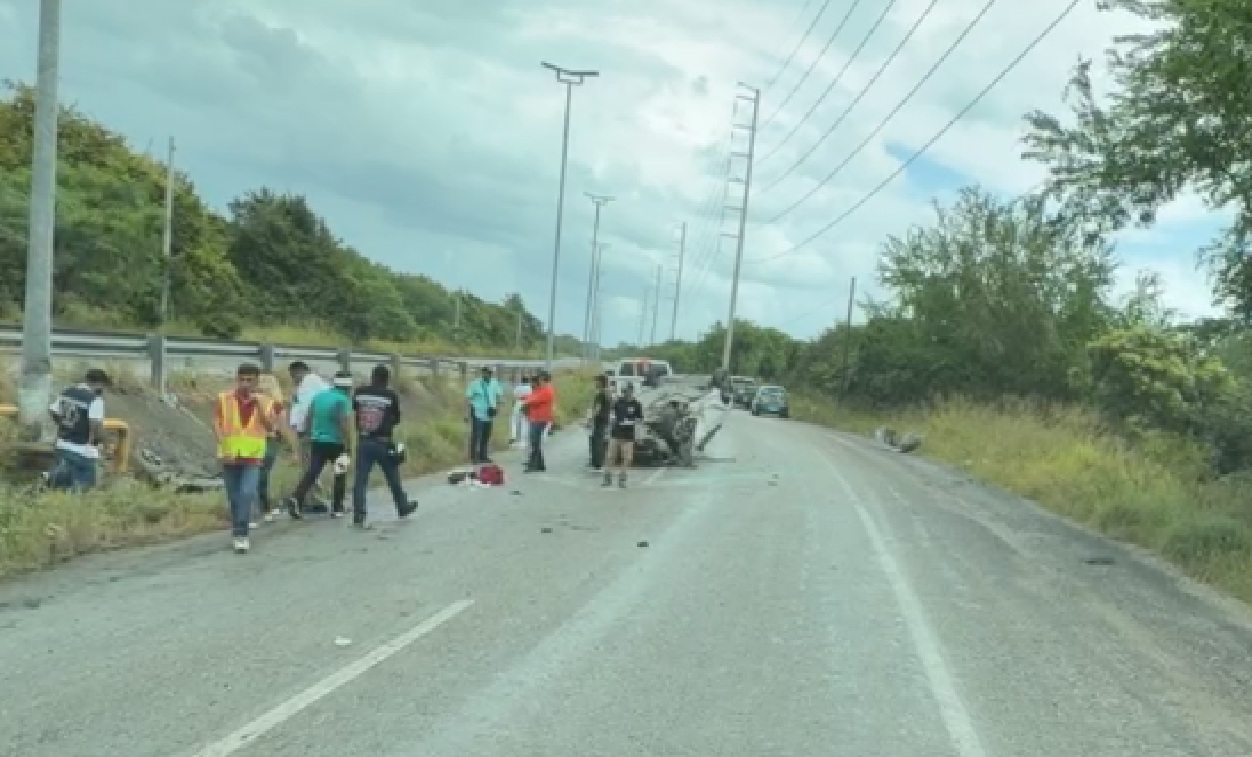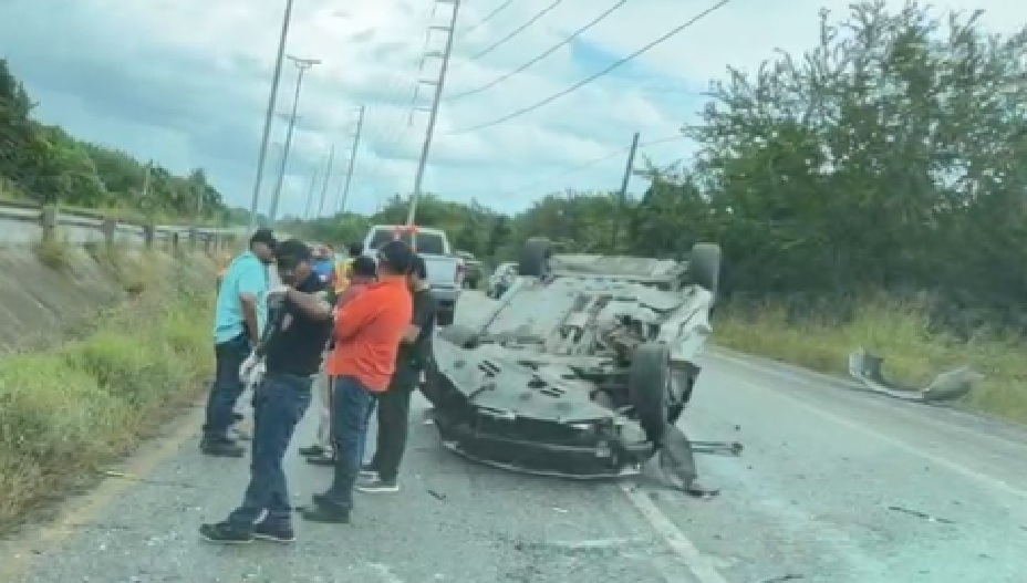 Auto compacto choca contra poste y vuelca en el corredor urbano Luis Donaldo Colosio