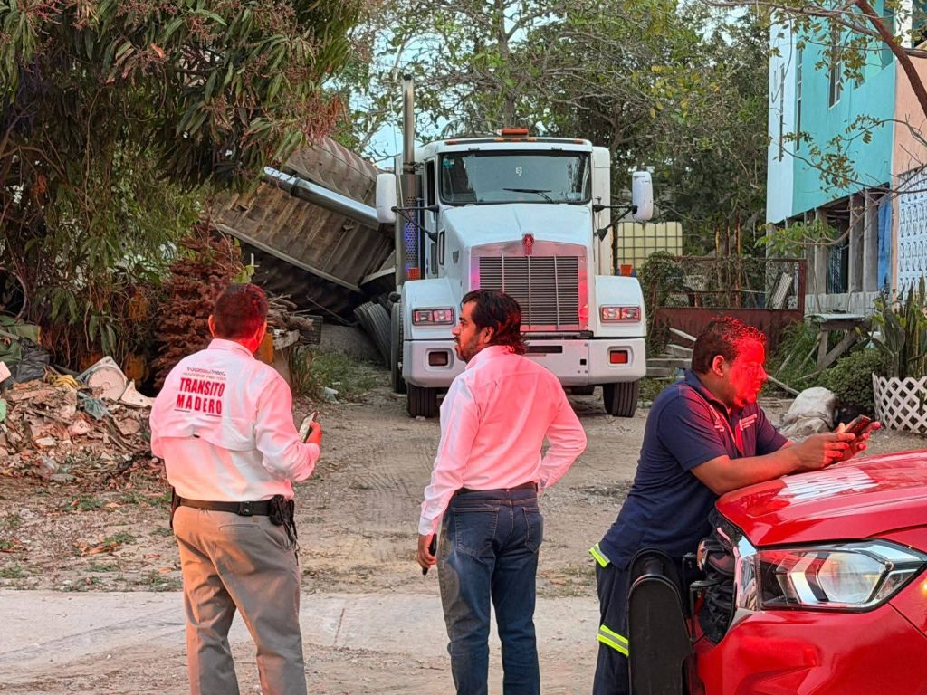 Tráiler provoca daños en vivienda al caer su tolva en Ciudad Madero