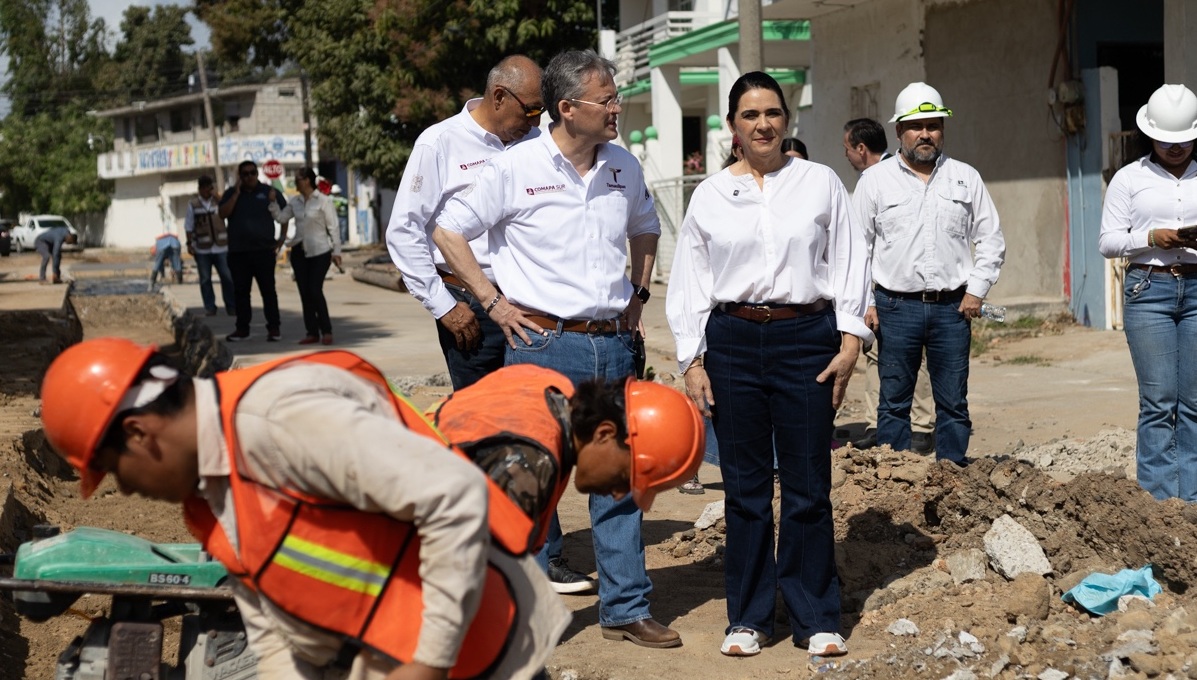 Supervisan COMAPA Sur y Ayuntamiento de Tampico obra sanitaria para atender socavón en la colonia Laguna de la Puerta
