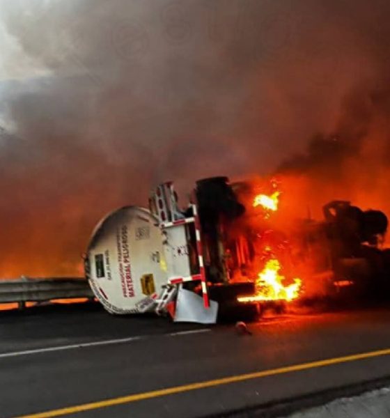 Esta madrugada se registró la volcadura e incendio de una pipa que transportaba diésel sobre la carretera Valles–Tampico, a la...
